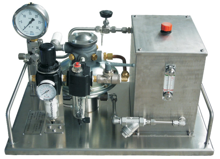 1. 组成元件包括S-216-J(JB)-*-(HO)泵(10种比率)、空气过滤器、调压阀、油雾器、气压表、气体截止阀、消声器、高压针阀、液压表等。